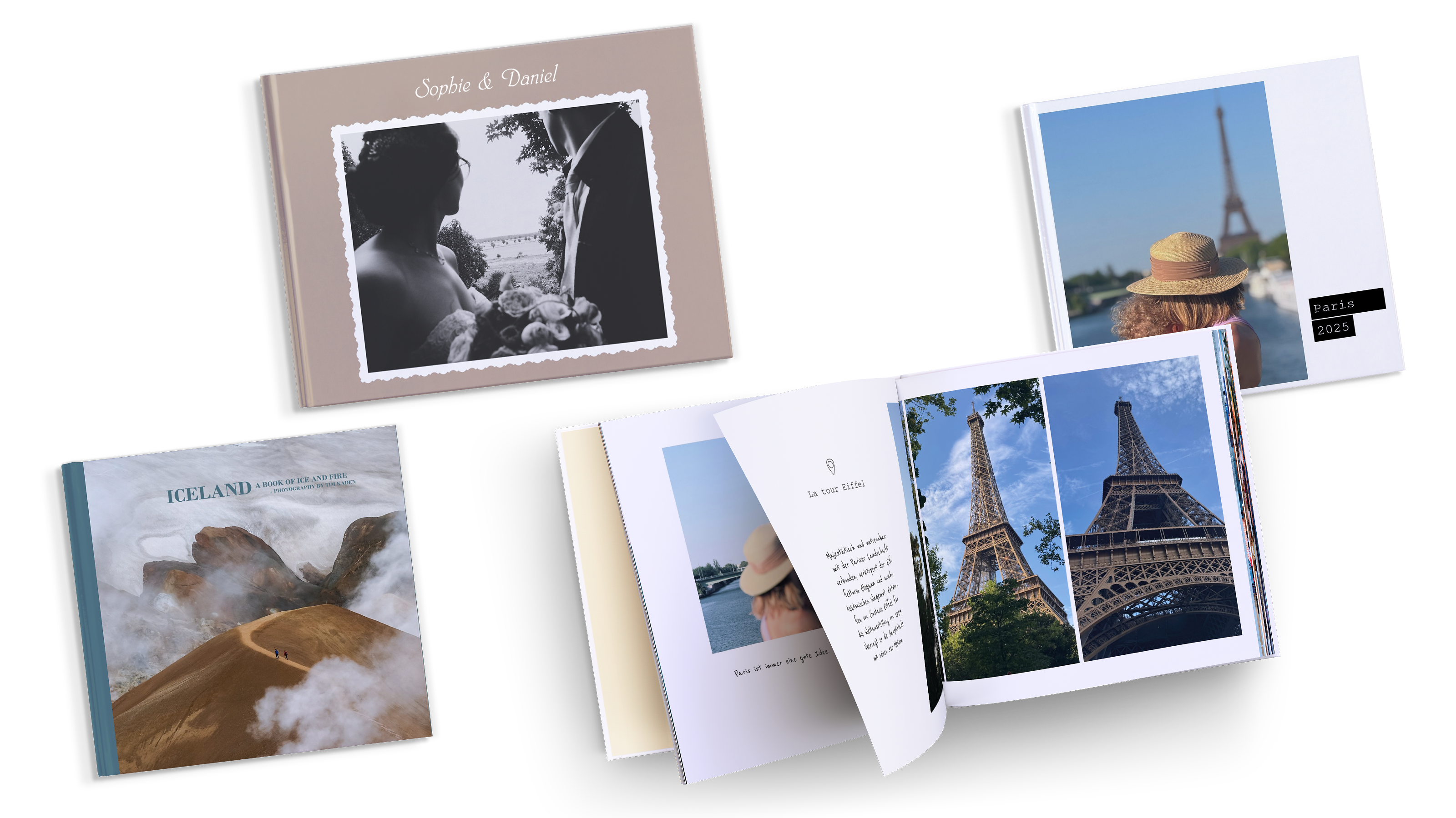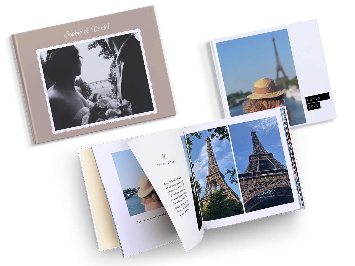 Faites votre sélection parmi notre gamme de modèles et mise en pages, dans lesquels il ne vous reste plus qu'à y glisser vos photos.